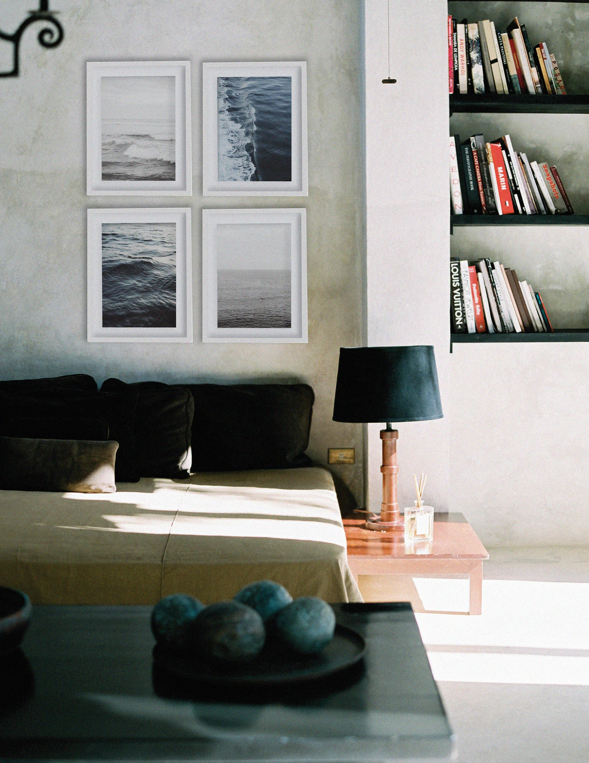 Dark blue and silver hues, mixed with black and white ocean scenes will give any room the perfect, moody west coast touch. Smell the salty air and feel the cool breeze inside and outside.